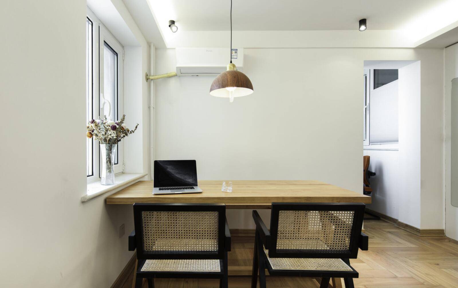 1、将餐厅旁的小阳台改造成独立办公区,实现生活与办公互不干扰。